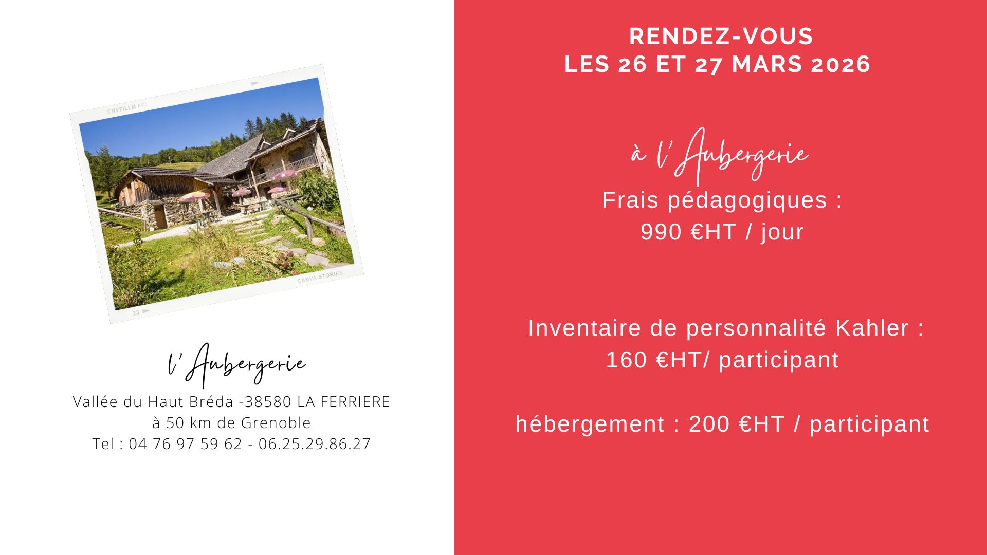 Prochaine session Les 26 et 27 mars à La Ferrière d’Allevard (38580)
